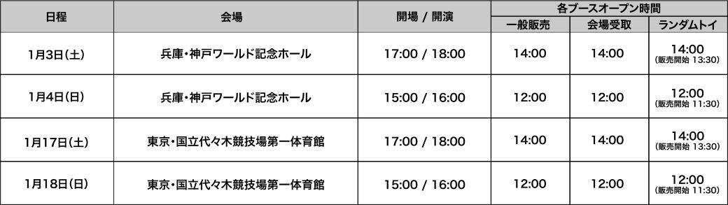 ※「OFFICIAL GOODS会場受取」ブースは各公演の開演時間で終了となります。