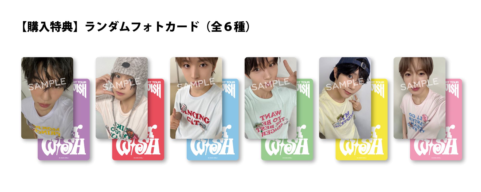会場一般販売、会場受取またはSMTOWN OFFICIAL ONLINE STOREにてグッズを6,000円(税込)以上お買い上げごとに、特典としてランダムフォトカード(全6種)を1枚お渡しいたします!