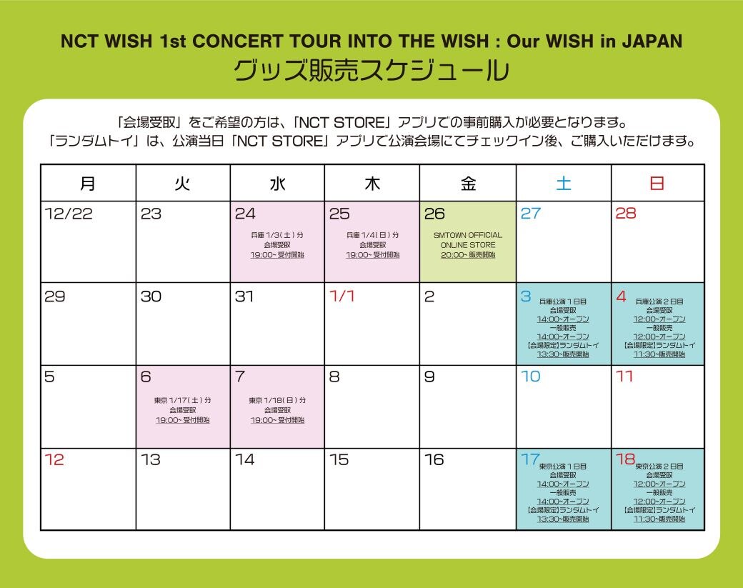 『NCT WISH 1st CONCERT TOUR INTO THE WISH : Our WISH in JAPAN』の追加グッズ販売および兵庫・東京公演の販売スケジュールをご案内いたします。