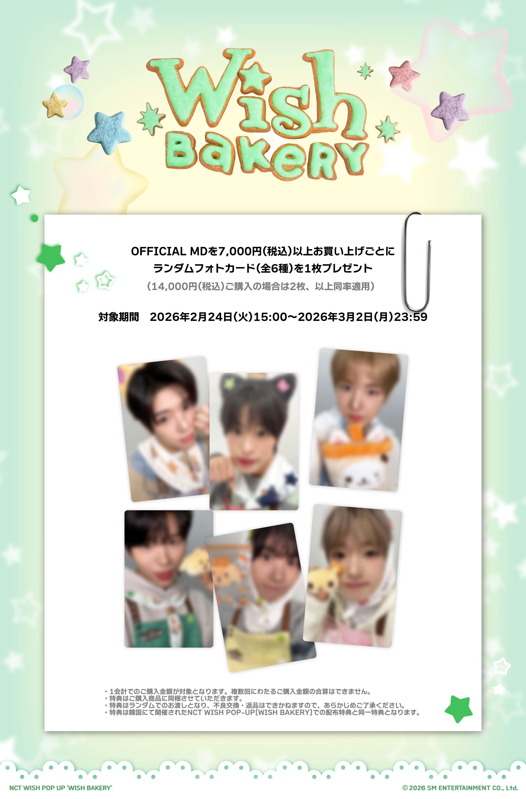 2026年2月7日(土)~2月22日(日)までの期間、韓国にて開催された『NCT WISH [WISH BAKERY] POP-UP』輸入MDの受注販売が決定いたしました!