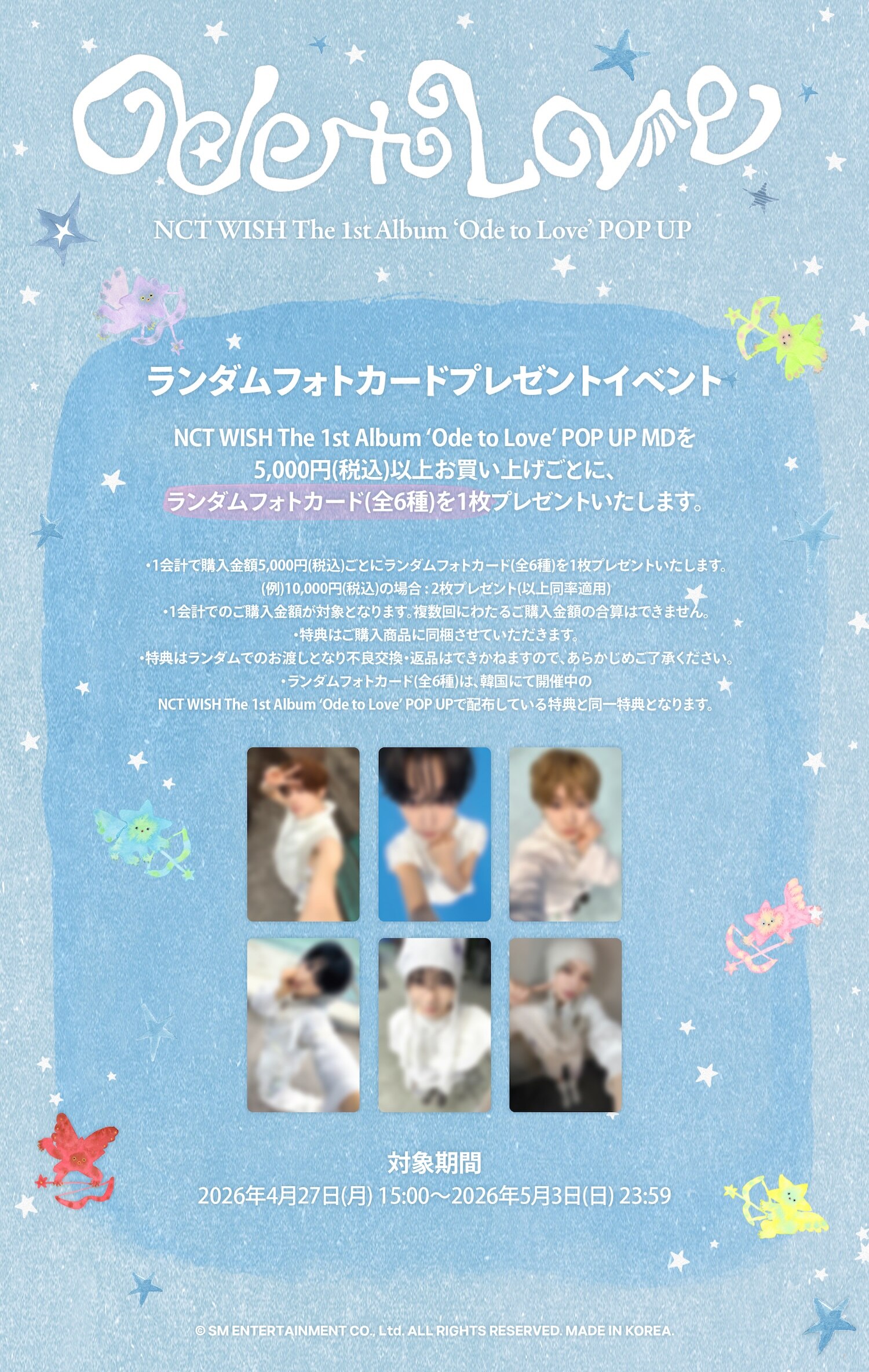2026年4月21日(火)~2026年5月3日(日)までの期間、韓国で開催されている 『NCT WISH The 1st Album ‘Ode to Love’ POP UP』 輸入MDの受注販売が決定いたしました!